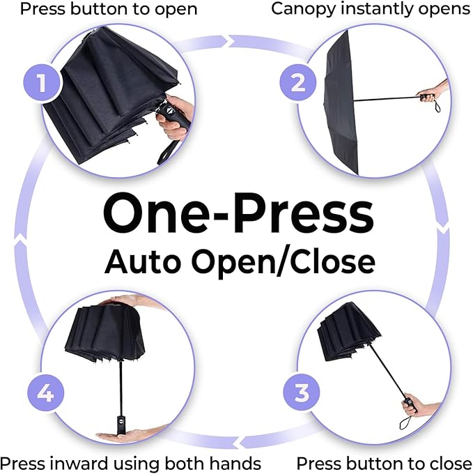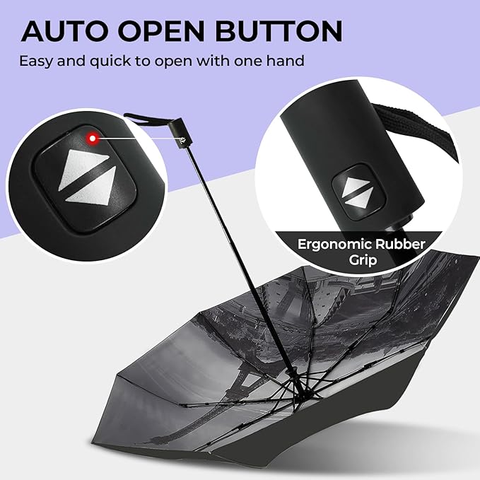 • Auto Open/Close: One-press mechanism for outdoors, real automatic umbrellas convenience. Deploy or retract this compact umbrella with one hand at crosswalks, buses, or train platforms.