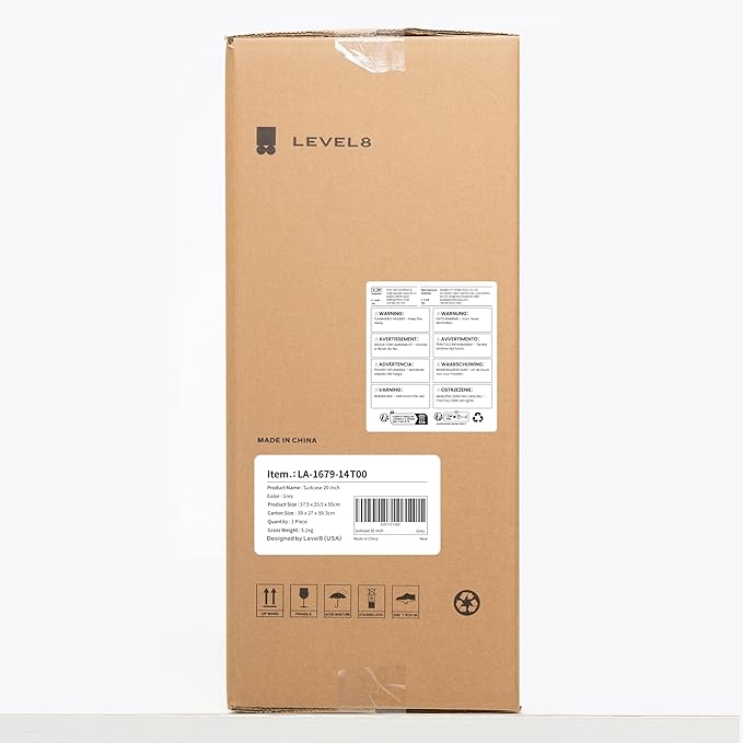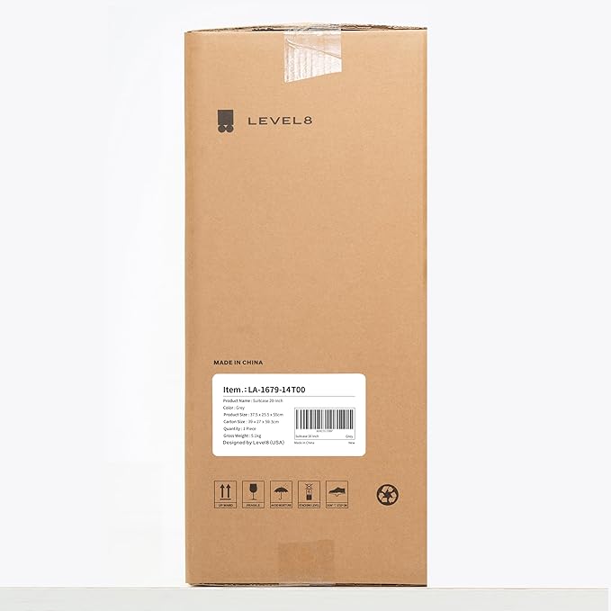 LEVEL8 Carry On Luggage with Compartment, 20 Inch Lightweight Hard Shell Rolling Suitcase with Wheels Airline Approved with Front Pocket, Double Tsa Locks, Grey