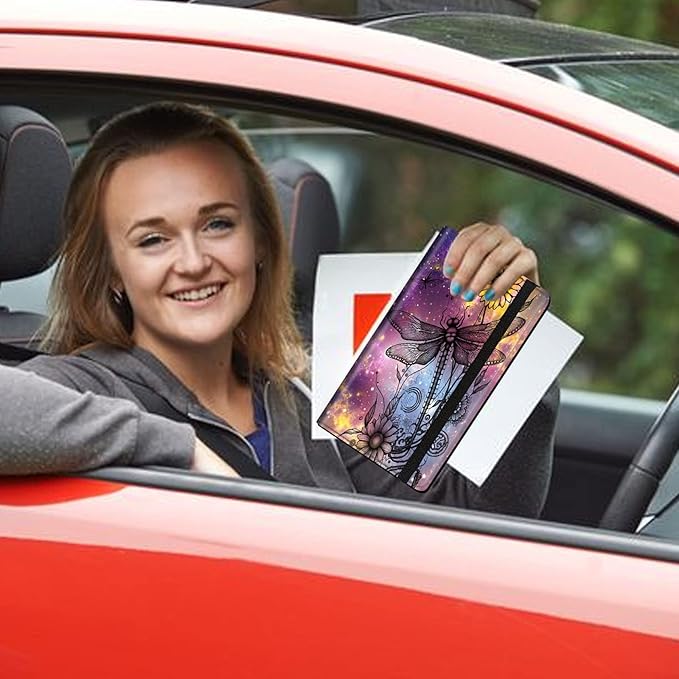 Car Registration and Insurance Holder, Leather Car Glove Box Organizer, Cool Car Accessories for ID, Driver's License Cards & Essential Document,Business Cards,Men&Women,Vintage Dragonfly