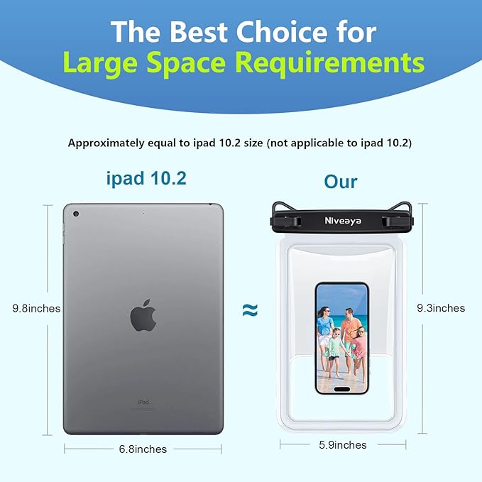 - 【Can Hold Many Phones At the Same Time】- Niveaya waterproof cell phone pouch has two 10.5 inch pouches. We designed two clear windows for making sure other items don't block the camera when you need to take pictures.
