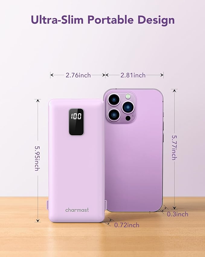 - 【Pocket-Sized Freedom】Passport Profile Design: Slim 5.95x2.76x0.72in, 228g. Fits in jeans pockets — 40% less bulk vs standard power banks with cables.