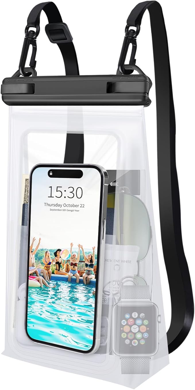 - Vacation Essentials: Waterproof bag keep your phone and valuables perfectly dry and safe when you're snorkeling, swimming, sailing, paddle boarding, tubing, kayaking, boating, river rafting, fishing, camping, shower, beach, water park, water slides or water activities. Tips: Please test the waterproof function with paper towel before each use, submerge in water for about 10 minutes