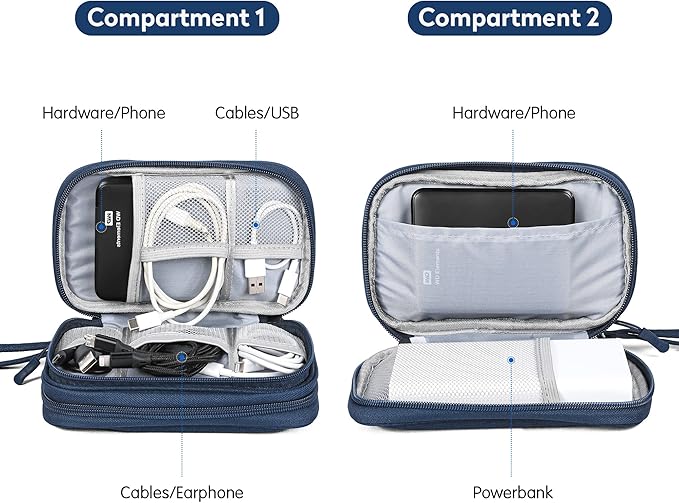 - 【Spacious Capacity Design】The Travel Organizer Bag is Divided into Two Compartments,Providing Enough Space for Cables,Chargers,Power Banks,USB Drives,Phones,Flash Drives and other Accessories,Served as a travel-Must-Have item for your Journey