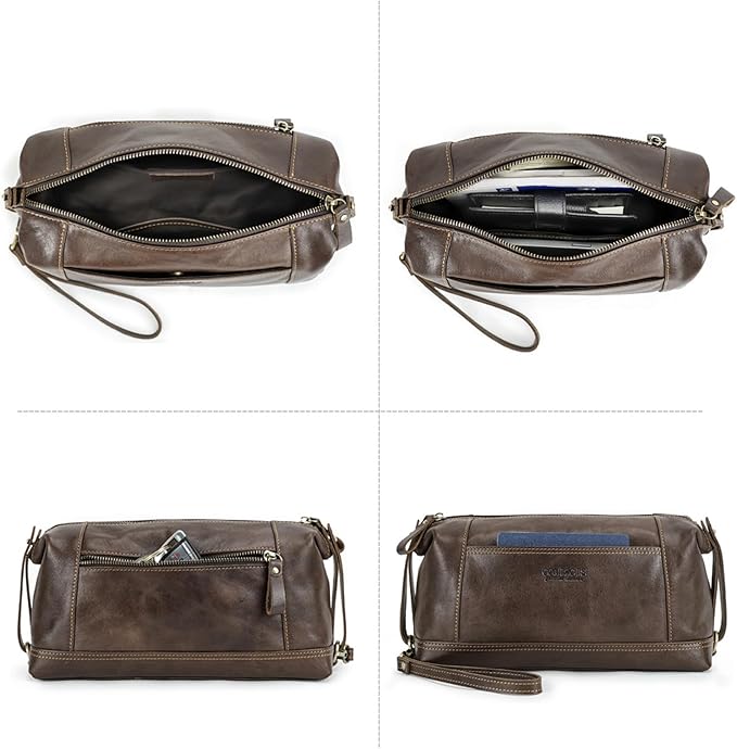 - 🔌【Vintage Design, Modern Utility】➯ This handmade craft combines a minimalist vintage design with practicality. Sized at 11.2" x 5.3" x 4.5", it's perfect for phones, data cables, USB, chargers, headphones, notebook, banknotes and other accessories. Exterior pocket for easy access to cards and passport. Offering protection without sacrificing portability!
