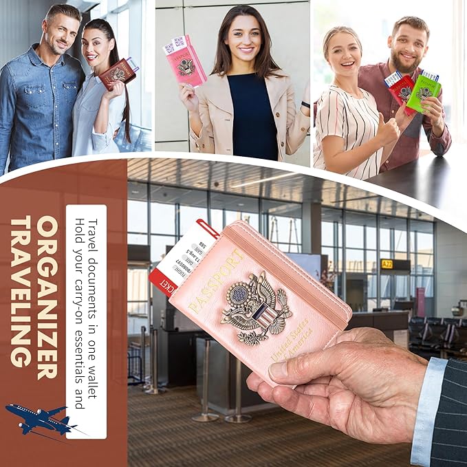 Passport Holder Cover Travel Wallet RFID Blocking Passport Wallets Family Organization Personalized Wallet Case for Men and Women Travel Must Haves(Rose gold)