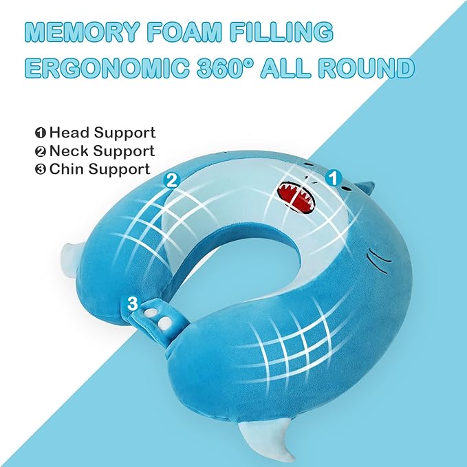 - MEMORY FOAM NECK SUPPORT PILLOW :The U-shaped travel pillow is filled with slow-rebound memory foam. This plane pillow can offer comfortable support to the neck, chin, and head, preventing your child's head from falling forward without getting a sore neck, and it can effectively relieve painful pressure points for ultimate relaxation. Helping your little kids have a good sleep or rest on a journey during long flights, car, or road trips.