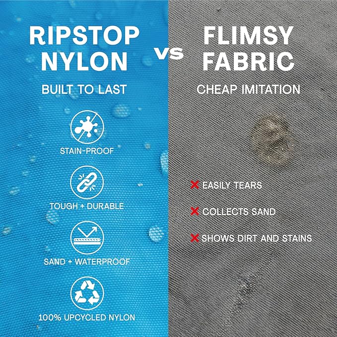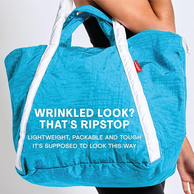 • SUSTAINABLY + DURABLY MADE: Made 100% post-consumer ripstop nylon, this beach tote bag keeps your essentials dry from splashes and free from sand while embracing sustainability