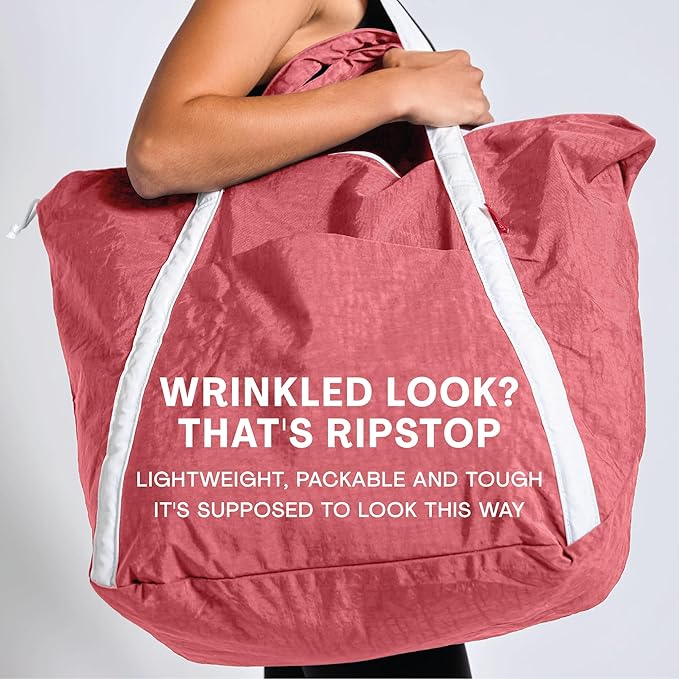 - SUSTAINABLY + DURABLY MADE: Made 100% post-consumer ripstop nylon, this beach tote bag keeps your essentials dry from splashes and free from sand while embracing sustainability