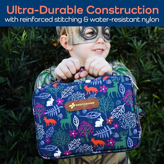 KeepGoing Large Home First Aid Kit for Kids – 270 Pc. for Car, Home, Dorm, & Boat with Latex-Free Bandages – 10 x 7 x 3.5 in. Travel First Aid Kit (Woodland)