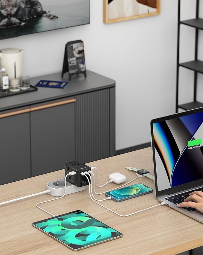 - Safety and Quality Assurance: Advanced GaN technology makes worldwide international adapter charging faster, cooler and more efficient. Lower charging temperature for longer service life. 10A overload fuse makes it possible to cut off the current in case of overcurrent charging.Fire resistant material makes this adapter non flammable. With safety shutters and plug lock system, supporting short circuit, over voltage and over current protection