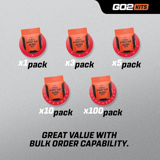 - PACK SIZES THAT MAKE SENSE: Our burn first aid kits for businesses and individuals are available in a range of bulk options, so you can easily supply your office, classrooms, shelter, crisis center, or kitchen with burn care essentials.