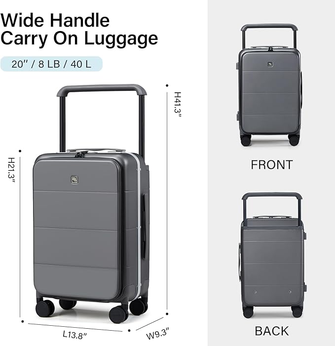 - Wide Handle Design for 13% Extra Packing Space: Wide handles on this zipperless carry-on luggage maximize interior room(ADDING 13% Space) while providing a secure grip for easy maneuvering