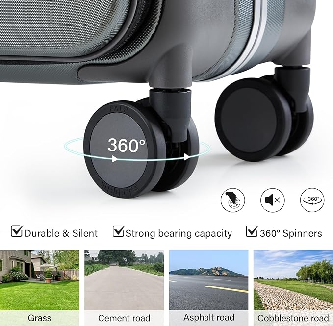 - Premium Travel-Tested Components: Features silent 360° spinner wheels for cobblestones/carpets, heavy-duty explosion-proof zippers, and TSA-approved locks. The ergonomic multi-stage handle ensures comfortable maneuverability across all terrains
