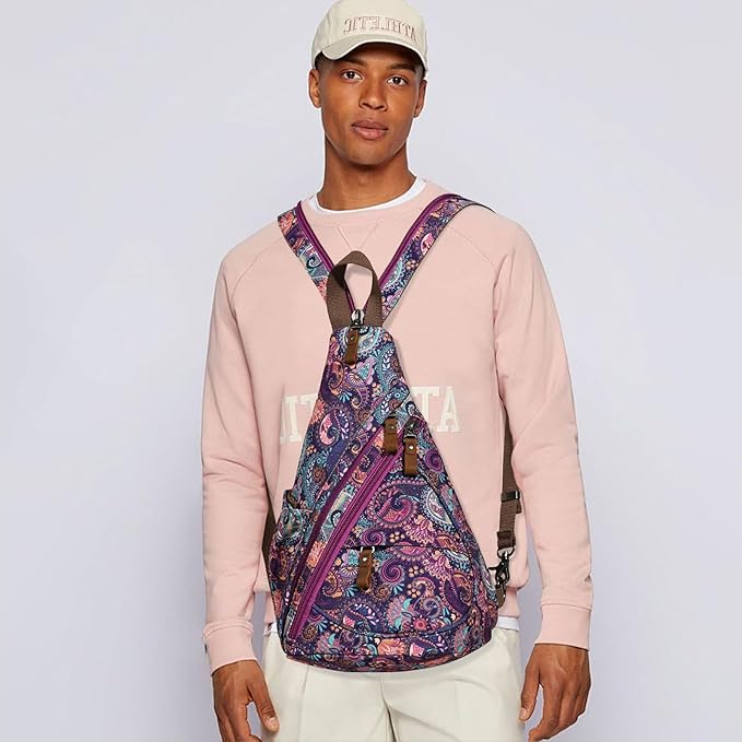 - [MULTI-APPLICATION] With the zippered and adjustable straps, this sling bag can be used as a small backpack, you can also wear it as a chest bag, a crossbody bag, etc. very charming and unique.
