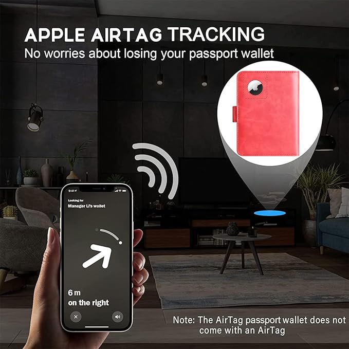 - PASSPORT AND AIRTAG HOLDER COMBO - The built-in holder for Apple Air Tag combine passport wallet and AirTag ideally to make sure you never lose your passport wallet again. Misplaced or lost your passport wallet? Keep track of and see where you last had it alongside friends and devices in the Find My app. The AirTag passport wallet does not come with an Airtag.