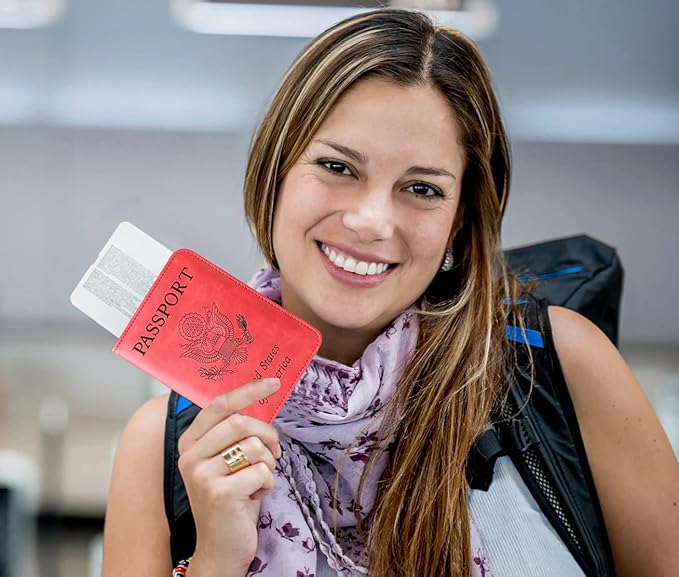Passport Holder Cover Wallet Travel Essentials Leather Rfid Blocking Case Vacation Luggage Must Haves Travel Accessories for Men Women (116#Red)