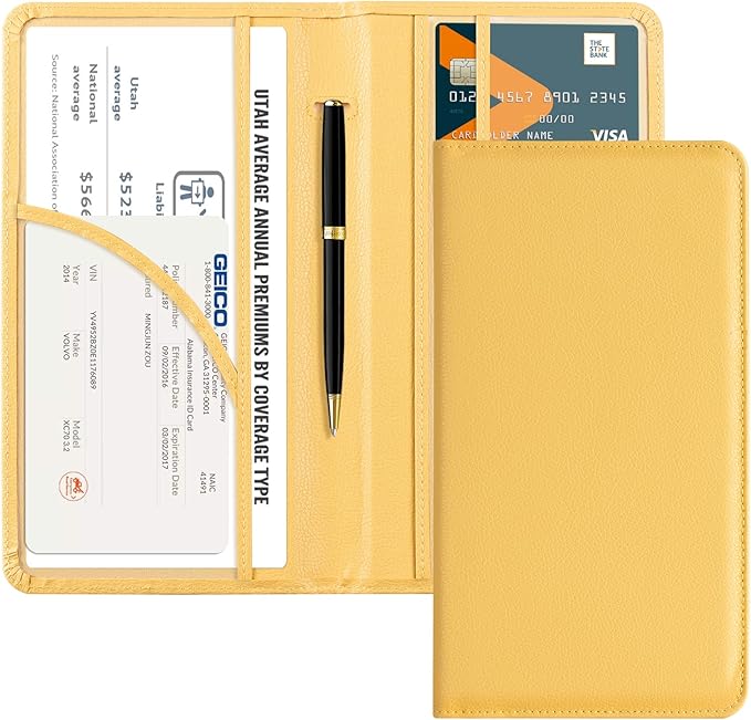 - 6 COMPARMENTS: Comes with 3 large pockets for insurance documents, vehicle registrations cards and other valueable information. And 3 small pocket for driver's license, ID cards, business cards, key contact information cards.