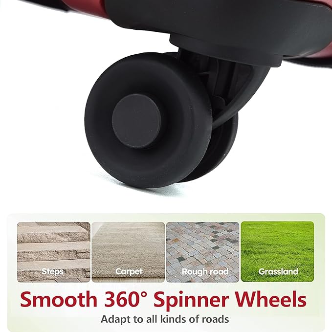 - Silent Spinner Wheel & Telescopic Handdle:4 silent spinner wheels, with soft TPU and lubricating balls inside, adapt to various grounds, and the 360° movement is very quiet and smooth. Adjustable telescopic handle, 3 levels of height adjustment, can meet the needs of different heights, and the smooth up and down design makes it more comfortable to carry.