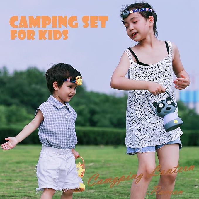 Outdoor Equipment LED Camping Lantern & Headlamp Set for Kids, FANT.LUX Battery Powered Night Light for Emergency, Hurricane, Lightweight Tent Lamp - Owl (Raccoon Set)