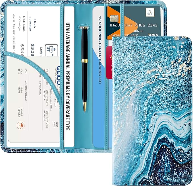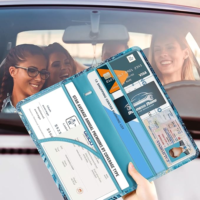 - 6 COMPARMENTS: Comes with 3 large pockets for insurance documents, vehicle registrations cards and other valueable information. And 3 small pocket for driver's license, ID cards, business cards, key contact information cards.