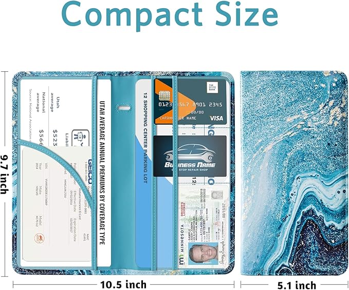 - COMPACT SIZE: 9.5" x 5.1"(24cm x 13cm), slim profile and lightweight design, perfect size for any glove box or console compartment, ideal choice to protect your important documents. Also a great gift for yourself, lovers, friends and family.