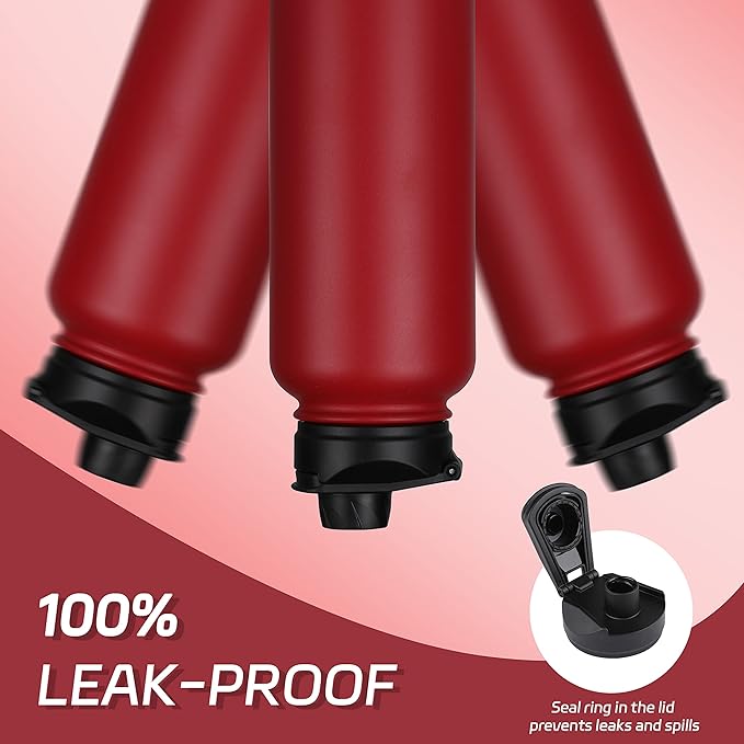 HASLE OUTFITTERS 32 oz Insulated Water Bottle Stainless Steel Double Walled Vacuum Sports Water Bottle with 2 Lids (Straw and Spout Lid) for Gym Camping Hiking(Red,4)