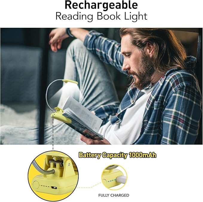 - 【Rechargeable & Long-lasting Lighting】 The battery life is great. Usb rechargeable with a built-in battery that can last up to 25 hours of use(LOW Mode). At High Mode, the reading light can last up to 5 hours lighting time. No need to buy batteries any more, save money. The correctly charging book light will make your reading light more durable. Please charge the book light every 3 months. When book lights are not used for a long time, the reading lights should be fully charged before stored.