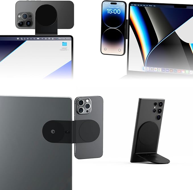 - Versatile Metal Plate and Metal Disc Options - The metal plate provides a secure adhesive attachment to your computer, with a patented pin to keep your device firmly in place. The metal disc allows for flexible mounting on other devices or surfaces, such as walls or stands, through the combined use of trasparent nano suction layers, expanding your setup options
