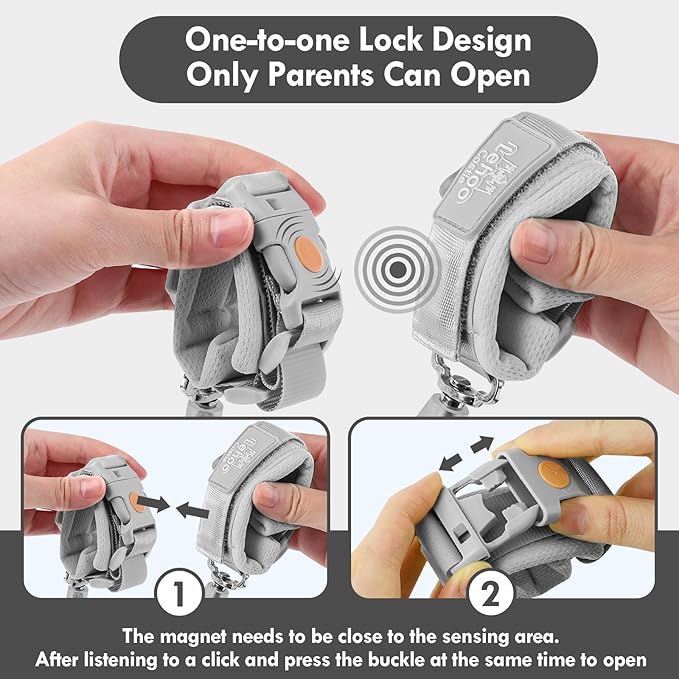 - Maximum Safety for Your Little Ones: Our anti-lost wrist leash for kids upgrade with magnetic lock - only be opened by the end of the parents' wrist, and the widened metal head makes it difficult to be cut off
