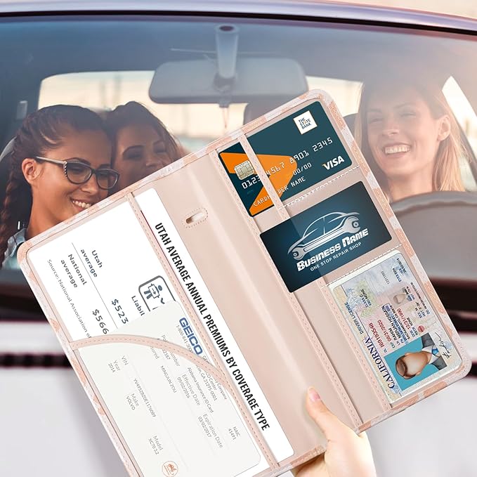 - 6 COMPARMENTS: Comes with 3 large pockets for insurance documents, vehicle registrations cards and other valueable information. And 3 small pocket for driver's license, ID cards, business cards, key contact information cards.