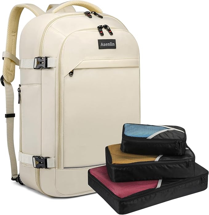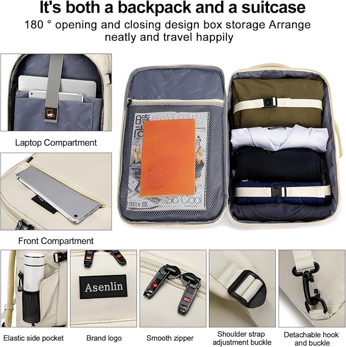Asenlin 40L Travel Backpack for Women Men,17 Inch Laptop Backpack Flight Approved Luggage Carry On Water Resistant for Weekender Overnight Large Daypack Beige