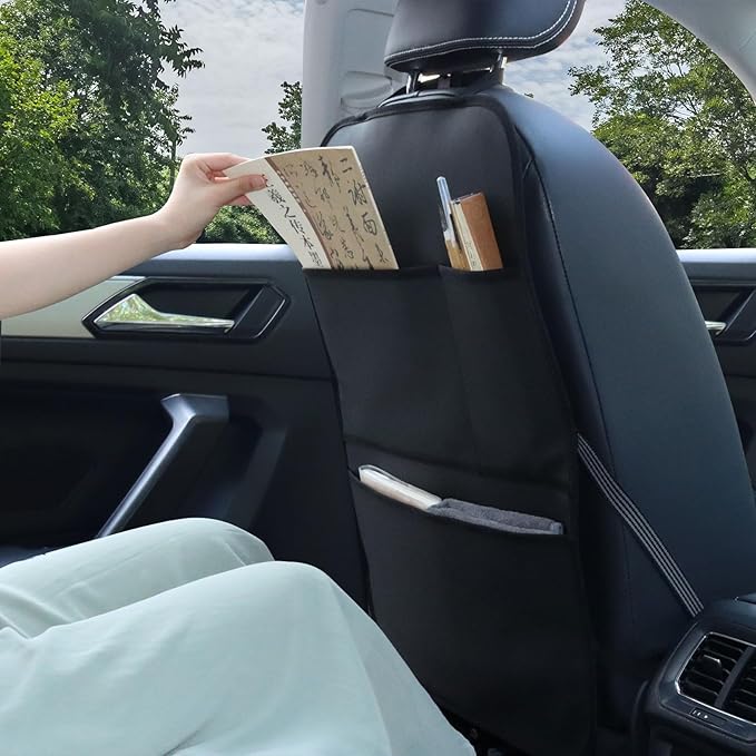- CONVENIENT TO CLEAN - Thanks to the leather material, the car backseat organizer anti-kick pad is waterproof and easy to clean, if there are stains, dirt, dust and mud, simply wipe them with a damp towel and dry naturally, that’s very convenient to clean and maintain