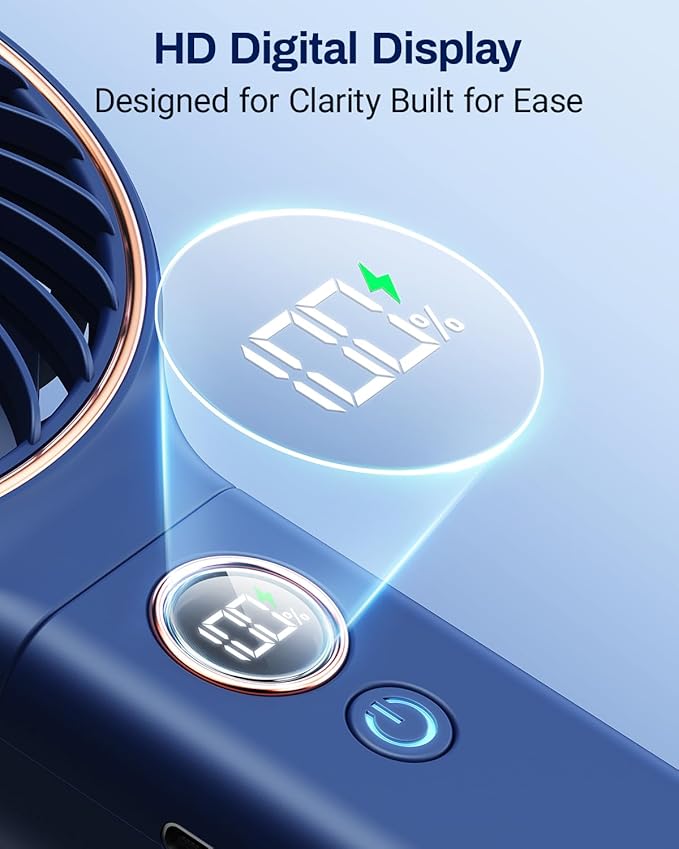 - LED Display & 6 Speeds: LED display for real-time gear and remaining power display. Hand-held mini fan with 6 adjustable gears, wind speed is gradually increased from 1 to 6 to meet various usage scenarios, stay cool anywhere