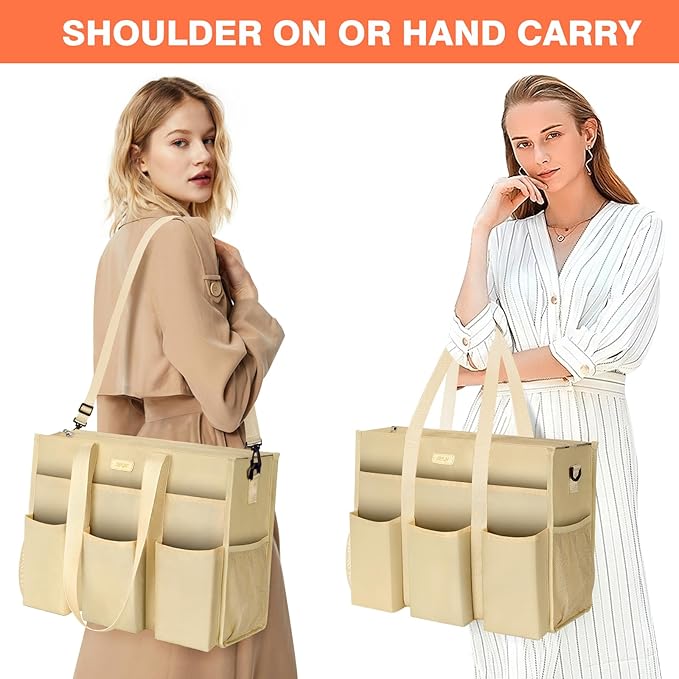• Zip Top Teacher Tote Bag- The teacher utility tote has a top zipper closure for better protection. It will stand on its own without tipping over. It can be carried by hand or on the shoulder, the Large tote bag comes with an adjustable shoulder strap, more comfort when carried on the shoulder.