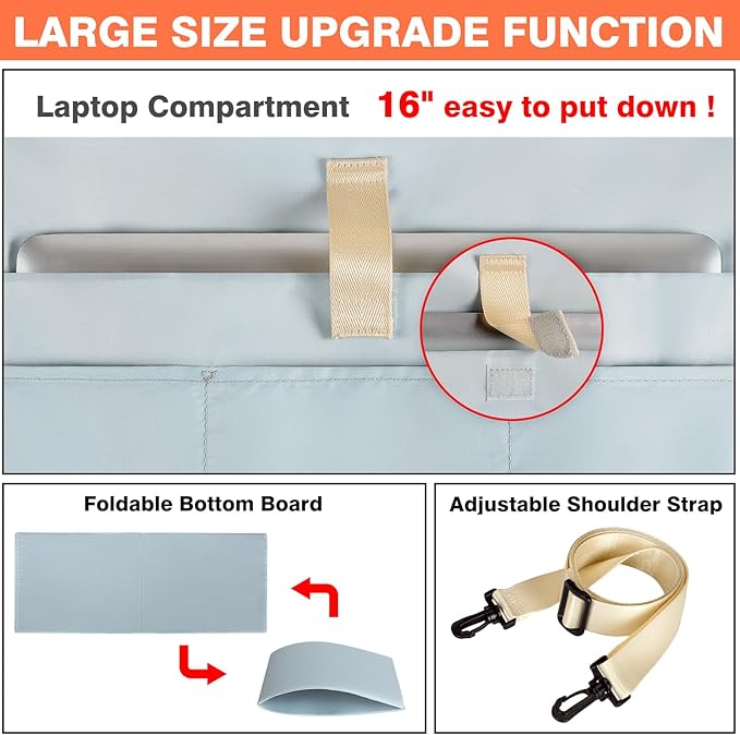 • 14/24 Exterior Interior Pockets - Large Size: 14 exterior and 10 interior pockets. Medium Size: 8 exterior and 6 interior pockets. The Large utility bag includes a laptop compartment inner pocket, can hold a laptop up to 16 inch. Especially suitable for people like teachers, is a perfect teacher utility tote.