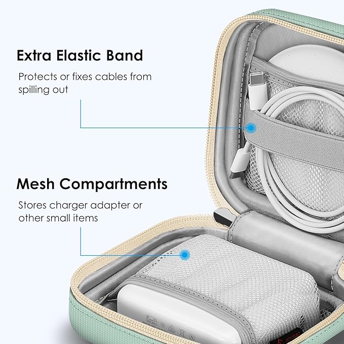 - 【COMPACT & PORTABILITY】Size: 5 x 5 x 2 inches (LxWxH), Weight: 6oz. Lightweight portable charger organizer for travel, easy to carry and fit into the backpack or handbag without taking much space. A great companion as a travel electronics organizer and small accessories organizer bag.