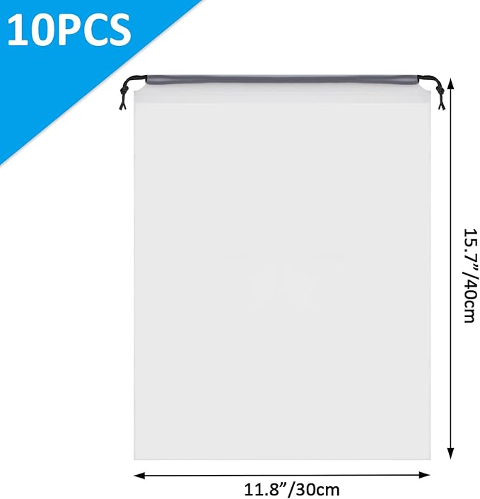 Clear Shoe Bags - 10 PCS, 15.7" x 11.8", Drawstring Travel Shoe Bags for Packing, Waterproof Dustproof Portable Shoe Storage for Men and Women