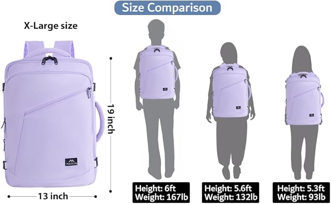 MATEIN Carry on Backpack for Women, 40L Heavy Duty Travel Backpack Airplane Approved, Expandable Simple Fashion Daypack, Frequent Traveler Gifts, Light Purple
