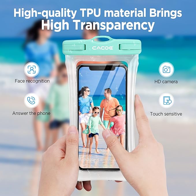 - IPX8 Certified CACOE Waterproof Case:With the excellent IPX8 waterproof seal, this 100% waterproof phone case protects the devices in a variety of environments. The maximum water depth is 30m, it features easy snap and lock access that ensures a perfect seal. Protects against water, snow, dust, sand and dirt.(NOTE: Please test underwater before use).