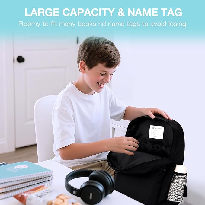 STEAMEDBUN Black Backpack for School,Teens Boys Backpack for Elementary School Bag