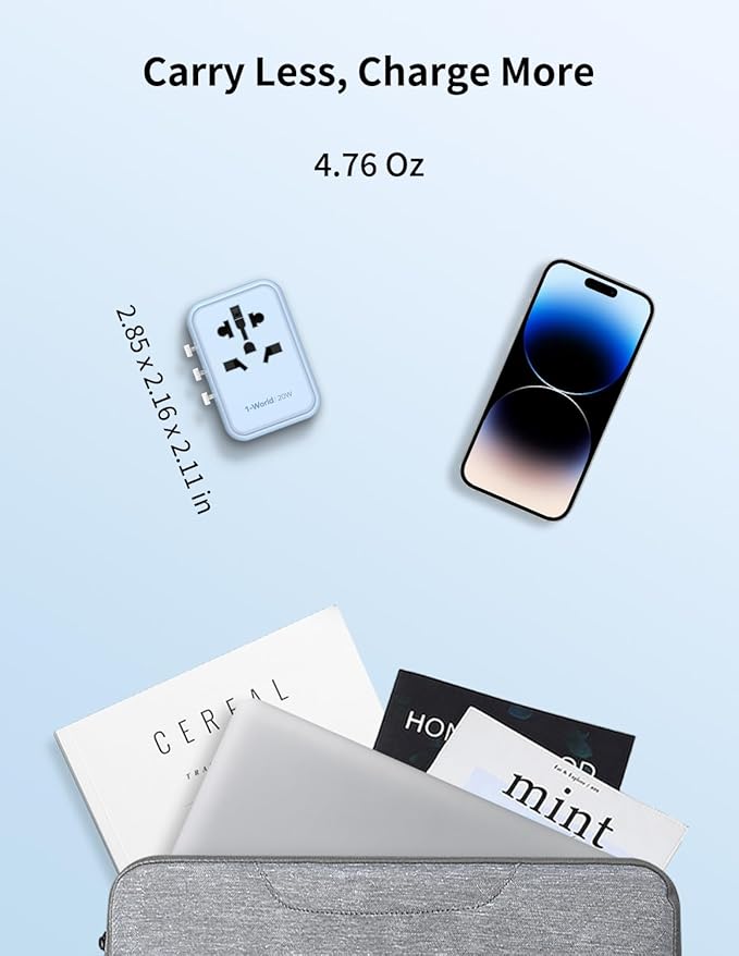 - Portable and Safe - MOMAX advanced GaN technology compresses this travel plug adapter to a surprisingly compact size (2.86" x 2.15" x 2.1") and lightweight (4.8 oz), In addition to GaN cooling and fireproof PC material, this international travel adapter also has 10A overload dual fuse, safety shutters and plug lock system, supporting short circuit, over-voltage, over-current protection, and with RoHS, CE, and FCC certifications which can effectively avoid the danger during charging, provide extra peace of your mind