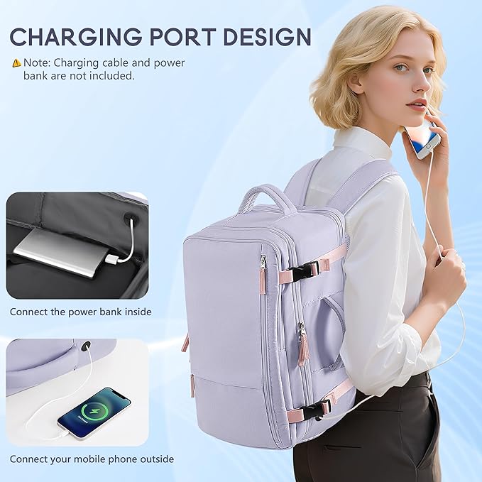 - 【USB Charging & Headphone Port Design】This USB backpack adds a unique charging port design, uses a data cable to connect the power bank inside the backpack and the mobile phone outside, offers you a more convenient way to charge your phone while walking. (Note: The power bank and cable are not included). There are also two extra storage bags that can be used to store toiletries or cosmetics