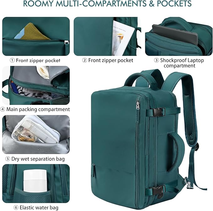 Beraliy Travel Backpack, Carry on Backpack, Airline Approved Personal Item Bag, 16 Inch Laptop Backpack, Waterproof Hiking Daypack Backpack, Weekender Bag, Peacock Blue