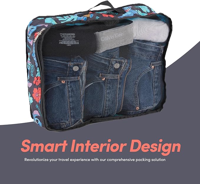 - Versatile Disney Travel Essentials: Transform any carry-on, suitcase, or extra luggage with these premium compression packaging cubes and luggage organizer bags. Features beloved Mickey Mouse, Minnie Mouse, Stitch, Princess, and Pooh designs. Perfect for organizing clothes, accessories, and travel essentials during Disney cruises, park visits, or family vacations. These travel bags organizer for luggage make packing magical and efficient, while the compression helps you pack more in less space.