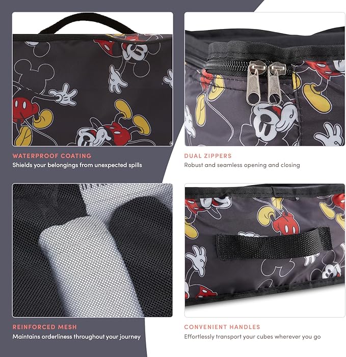 - Versatile Disney Travel Essentials: Transform any carry-on, suitcase, or extra luggage with these premium compression packaging cubes and luggage organizer bags. Features beloved Mickey Mouse, Minnie Mouse, Stitch, Princess, and Pooh designs. Perfect for organizing clothes, accessories, and travel essentials during Disney cruises, park visits, or family vacations. These travel bags organizer for luggage make packing magical and efficient, while the compression helps you pack more in less space.