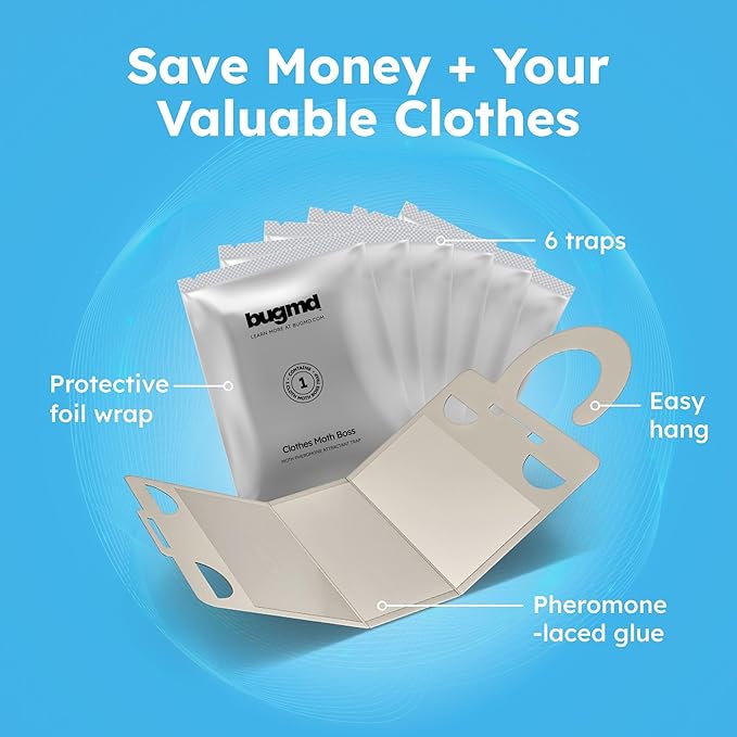 - CLOTHES MOTH TRAPS – Pheromone-infused sticky boards attract and trap clothes moths in closets, wardrobes, and drawers; each pack contains 6 pre-baited traps for effective moth control.