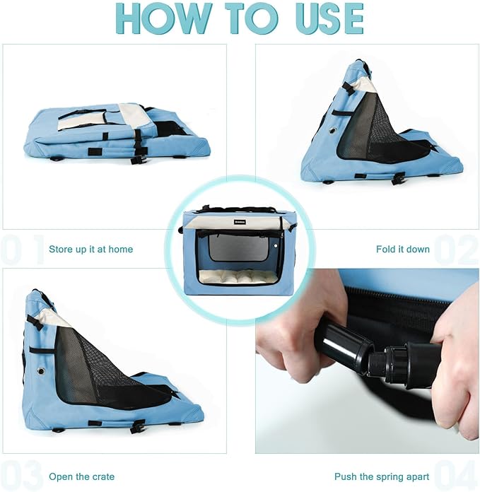- Size approximately L24*W16*H16 inches, soft crate for cat or small dog small animals, pet max weight 55lbs.