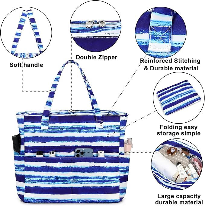 Bluboon Waterproof Beach Tote Pool Bags for Women Ladies Extra Large Carry On Bag With Wet Compartment for Weekender Travel