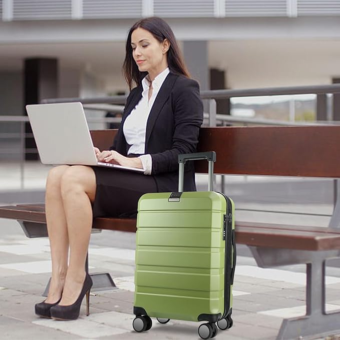 KROSER Hardside Expandable Carry On Luggage with Spinner Wheels & Built-in TSA Lock, Durable Suitcase Rolling Luggage with USB Port, Carry-On 20-Inch, Green