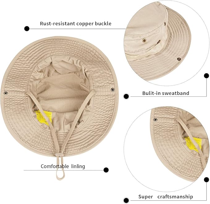 - GOOD DESIGN WIDE BRIM HAT:The well-designed summer outdoor hat has two ways to use it. Both sides are equipped with rust-proof buttons. When the brim is rolled up, it is a cowboy hat. Loosen it, will be a fashionable sun-proof fisherman hat/safari hats for men and women.